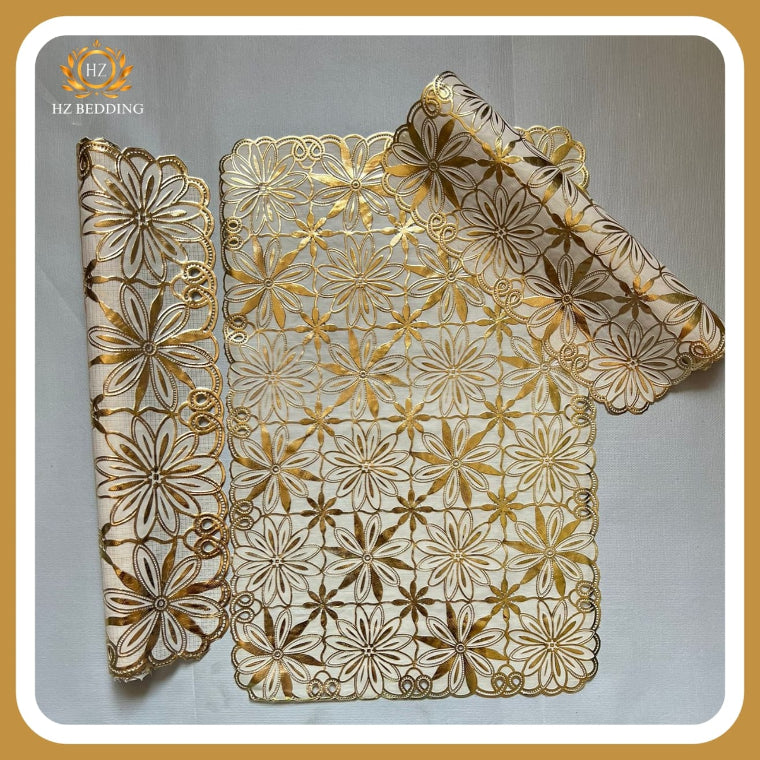 3pcs center table dressing table and side Table Mat Golden Large pcs size(15×36) And small 2pcs size(12×18) Inches material vinyl soft plastic Premium Golden