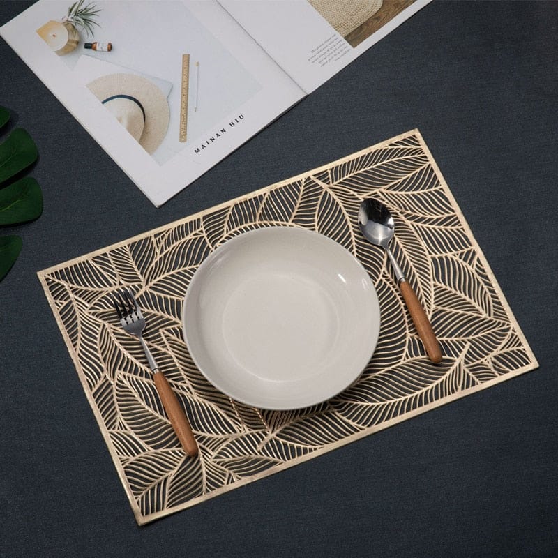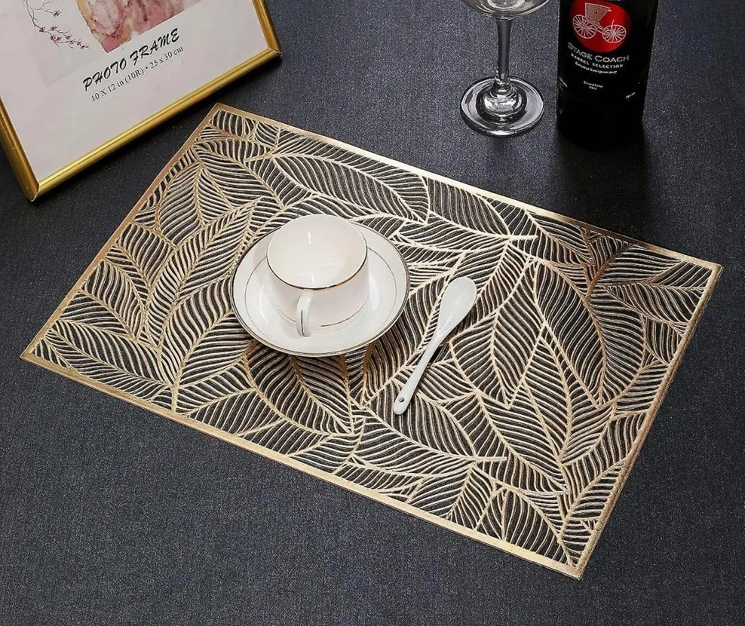 2Pcs / 4Pcs / 6 Pcs Rectangle Leaf Gold Floral Vinyl Placemats Non Slip Dining Table Placemats