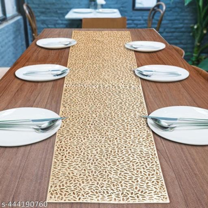 - Quantity: 1 Table RunnerMaterial: VinylColor: GoldDesign PlainSize: 12Inch x 36inchThickness: 2mmHeat Insulated: YesHeat Resistance Capacity: 80°CNon-Slip, Stain Resistant & Easy Care - Easy to clean, wipe with a damp cloth. No machine washFeatures: Exquisite design, High-Quality Material, Durable & Reusable Perfect for everyday use, easy to clean up. Hand wash in warm soapy water, wipe dry. Functions as Runner/PlacematAll sizes are approximate measurements Due to different light settings the actual color might vary a bit from the pictures.