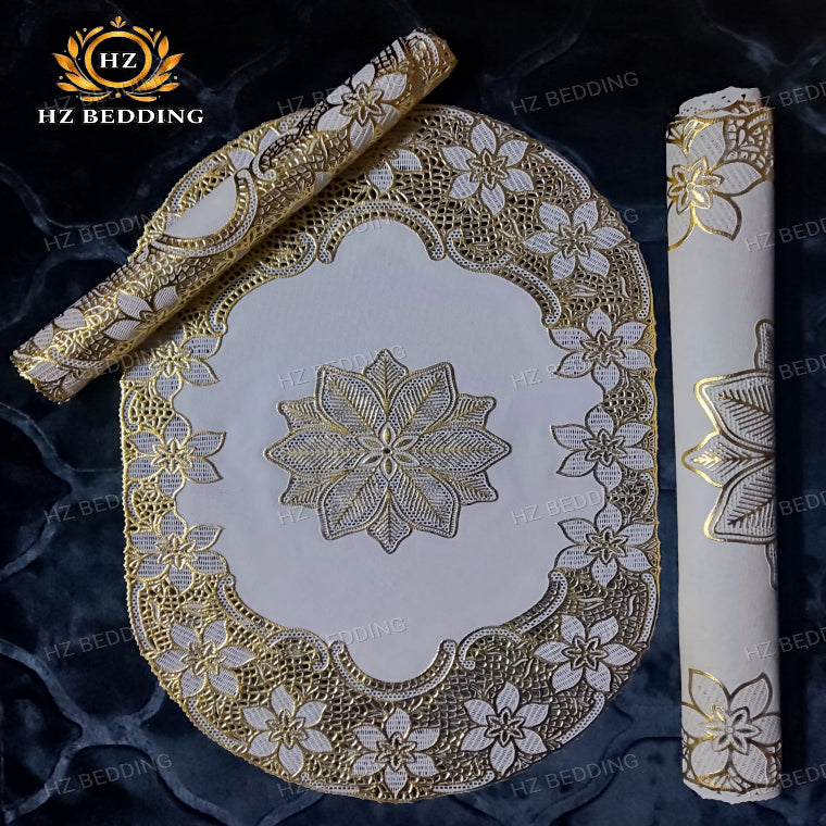 3pcs Premium center table dressing table and side Table Mat Golden Large pcs size(14×36) And small 2pcs size(11×17) Inches material vinyl soft plastic Premium