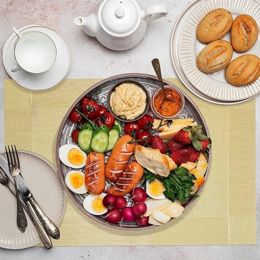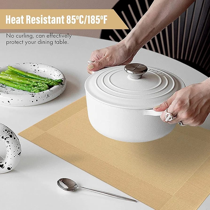 7Pcs Table Mat & Table Runner Beige Color Set Heat Resistant Placemats, Stain Resistant Washable PVC Table Mats for Dining Table Woven Placemat