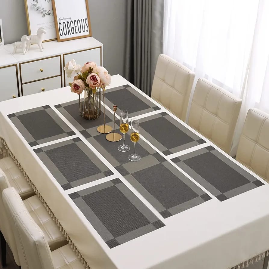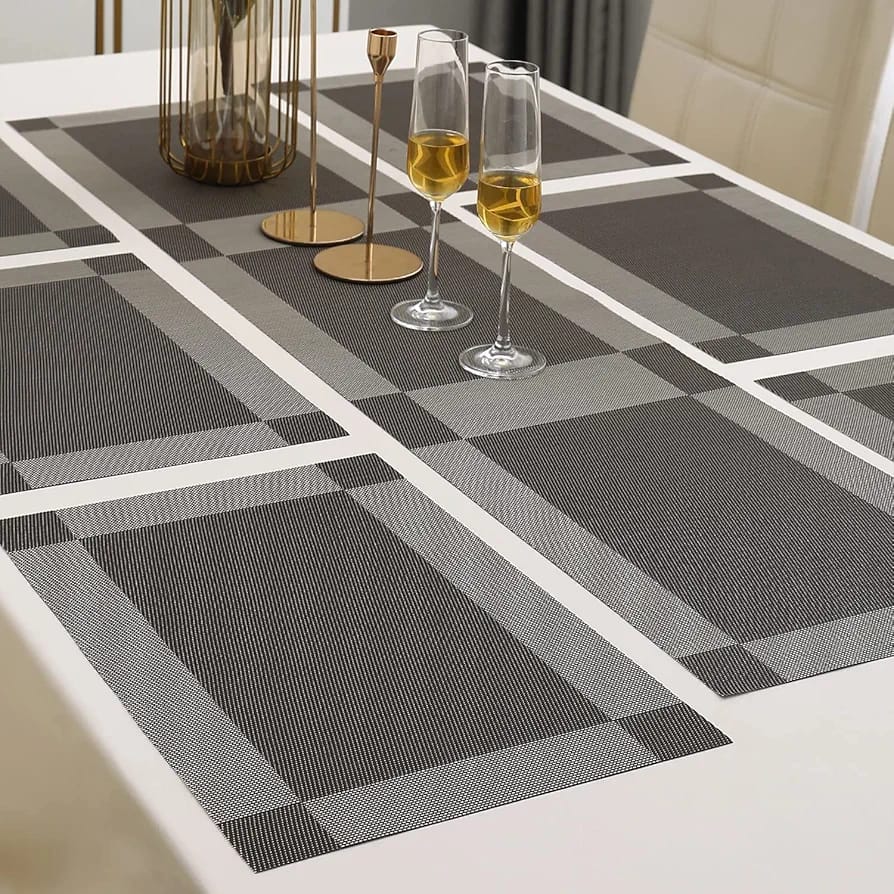 7Pcs Table Mat & Table Runner Dark Grey Color Set Heat Resistant Placemats, Stain Resistant Washable PVC Table Mats for Dining Table Woven Placemat
