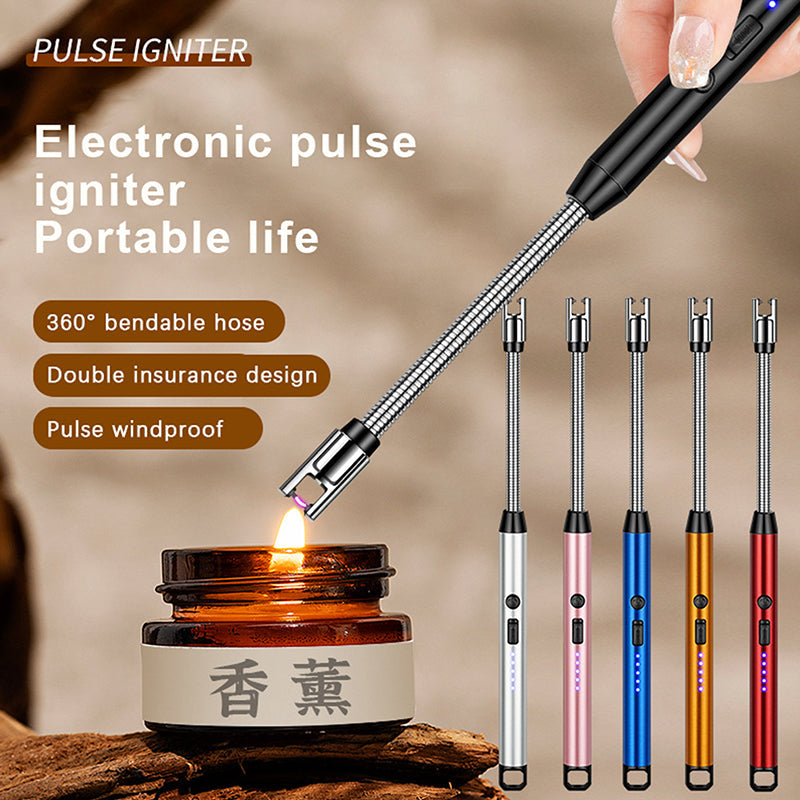 Aluminum Tube USB Arc Pulse Ignition Gun, Gas Stove Igniter, Windproof, Hose Lighter, Outdoor Candle, 360 Degree