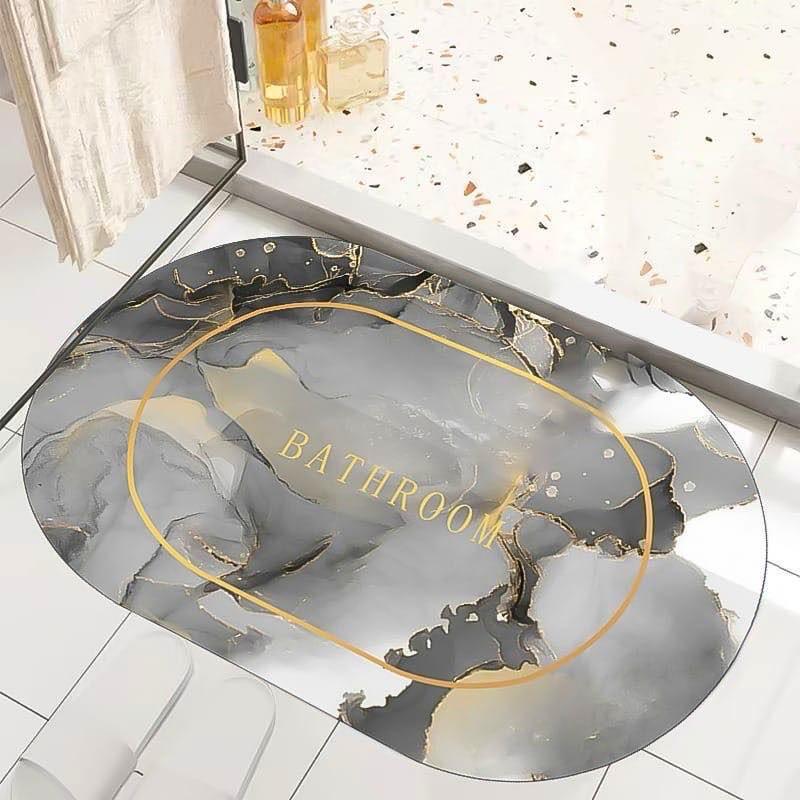 Marble Design Oval Super Water Absorbent Non-Slip Bath Mat Floor Mat for Bathroom Shower Room Tub Entrance Kitchen door mat