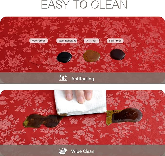 [Easy Cleaning] The surface of the tablecloth is impervious to water and spills, allowing you to effortlessly wipe away liquids with a damp cloth or napkin. For thorough cleaning, simply toss it in the washing machine with cold water and then dry it on a gentle cycle or under the shade.