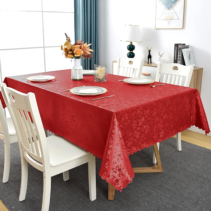 [Elegant Vinyl Tablecloth] Featuring floral embossed tablecloth with pretty scalloped edges, nice warm tone and soft touch add an elegant touch to these tablecloths, they are suited for light up your fancy dinner.
